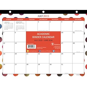 Polka Dots 8.5x11 AY Binder Calendar Wednesday, January 15, 2020 Edit Category: Books,Arts & Photography,Graphic DesignPolka Dots 8.5x11 AY Binder Calendar DetailsJuly - June 8.5x11 Binder Calendar; 3-hole punched for binders. 12 monthly perforated pages! Reviews Share this post